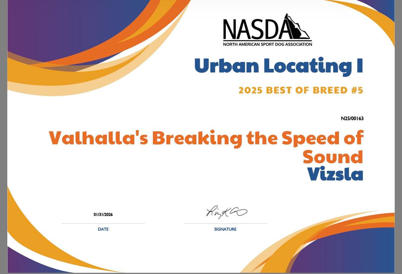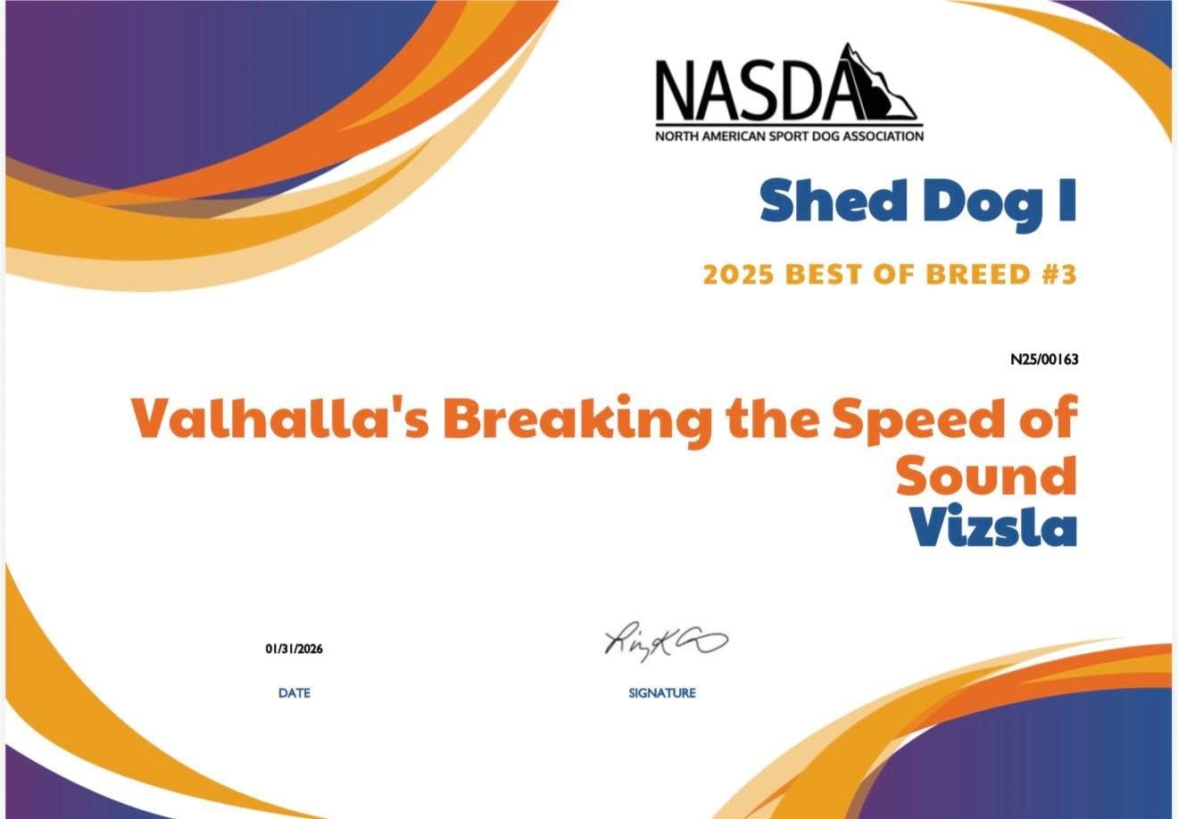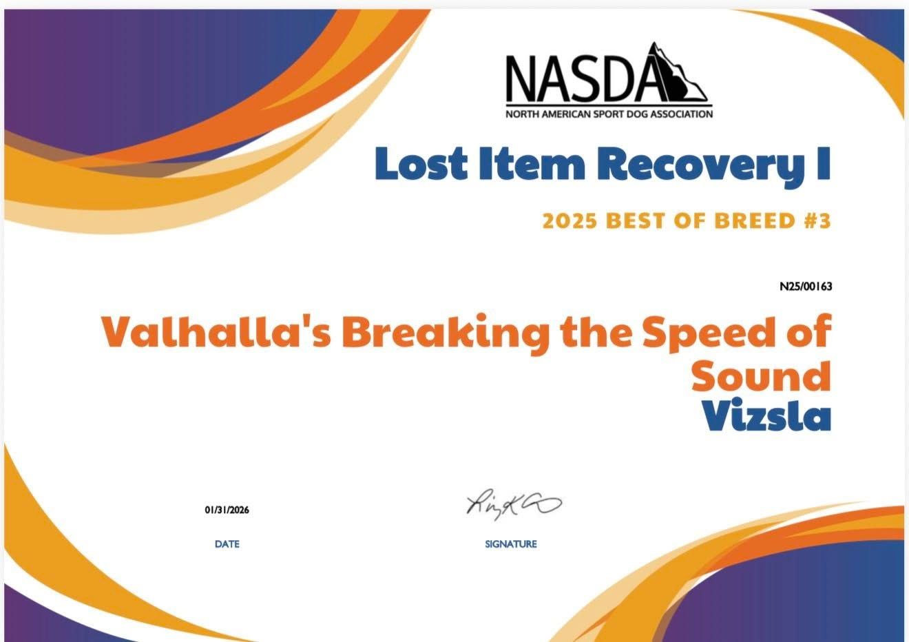 Yeager was tied for 2nd place in the country for most AKC Scent Work titles earned in 2025 among Vizslas, as compiled by wesmellbetter.com. That is a major accomplishment and reflects serious dedication, training, and consistency in competition.
